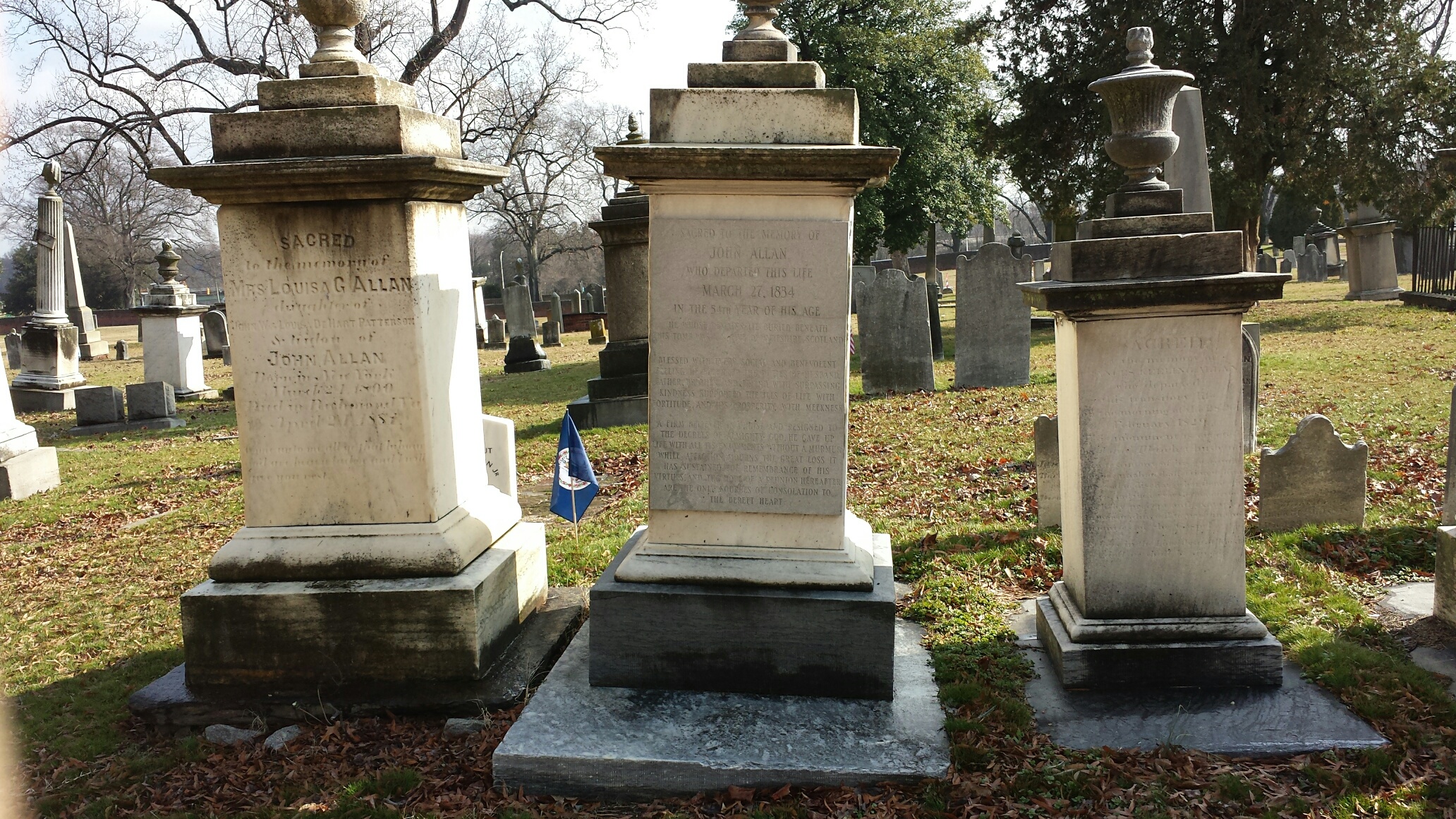 I must admit that in some strange way, I didn’t care to see Mr. Allan’s grave; however, his family plots were close to his the Stanards. I walked the ten feet from Mrs. Jane Stith Craig Stanard grave to the Allan’s. It further made me dislike this ghost of a man whom I could never know. Crazy, I know.
