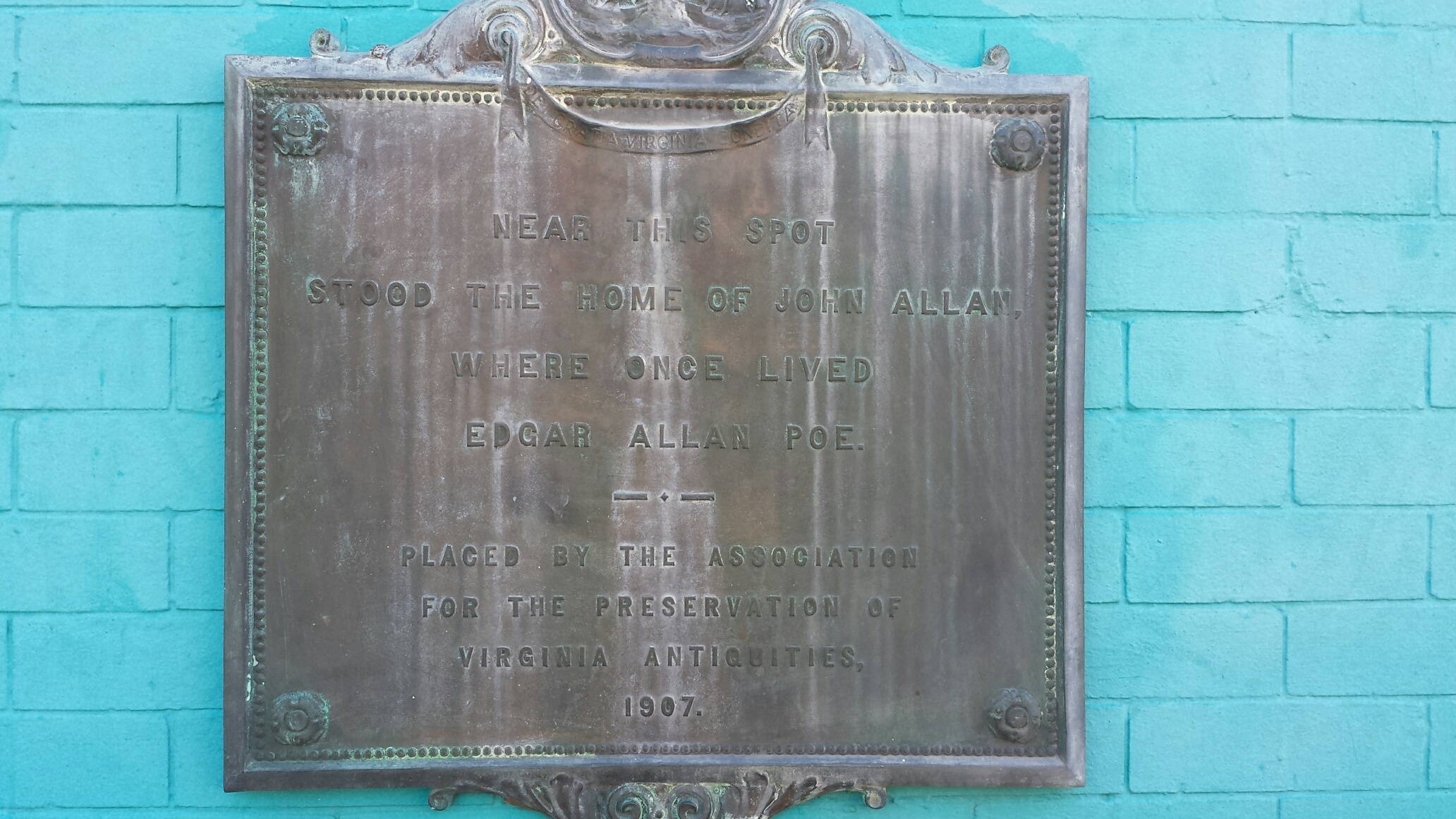 The house Poe grew up in is long gone to a history we can only read about: wars, fire, reconstruction. The Poe Society has marked the building. The building is currently condemned.